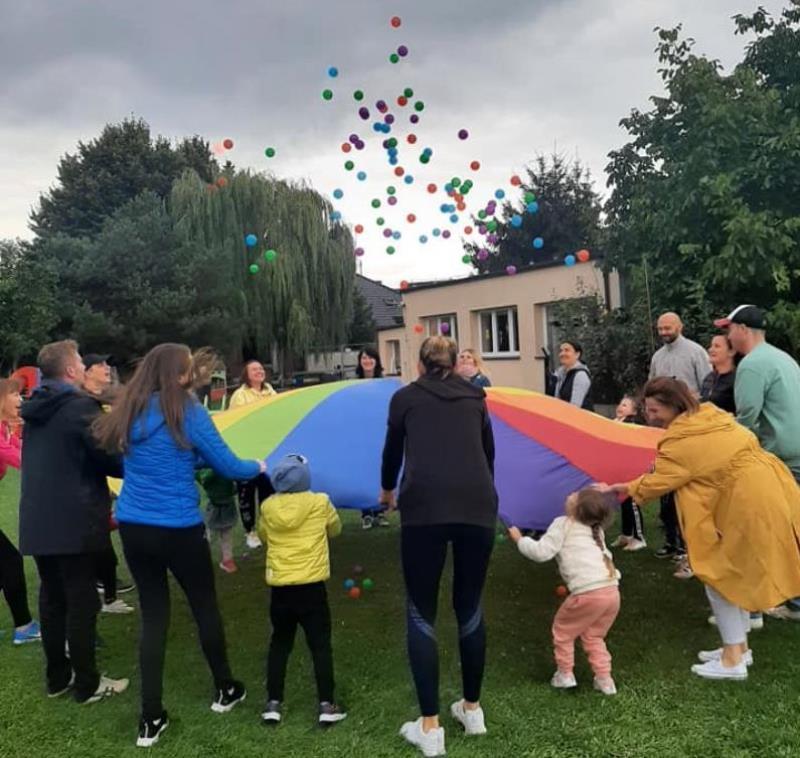 a przez cały rok festyny, animacje i wydarzenia integrujące społeczność przedszkolną. Rekreacyjna wiata umożliwia wypoczynek, spożywanie posiłków na świeżym powietrzu oraz spotkania okolicznościowe.