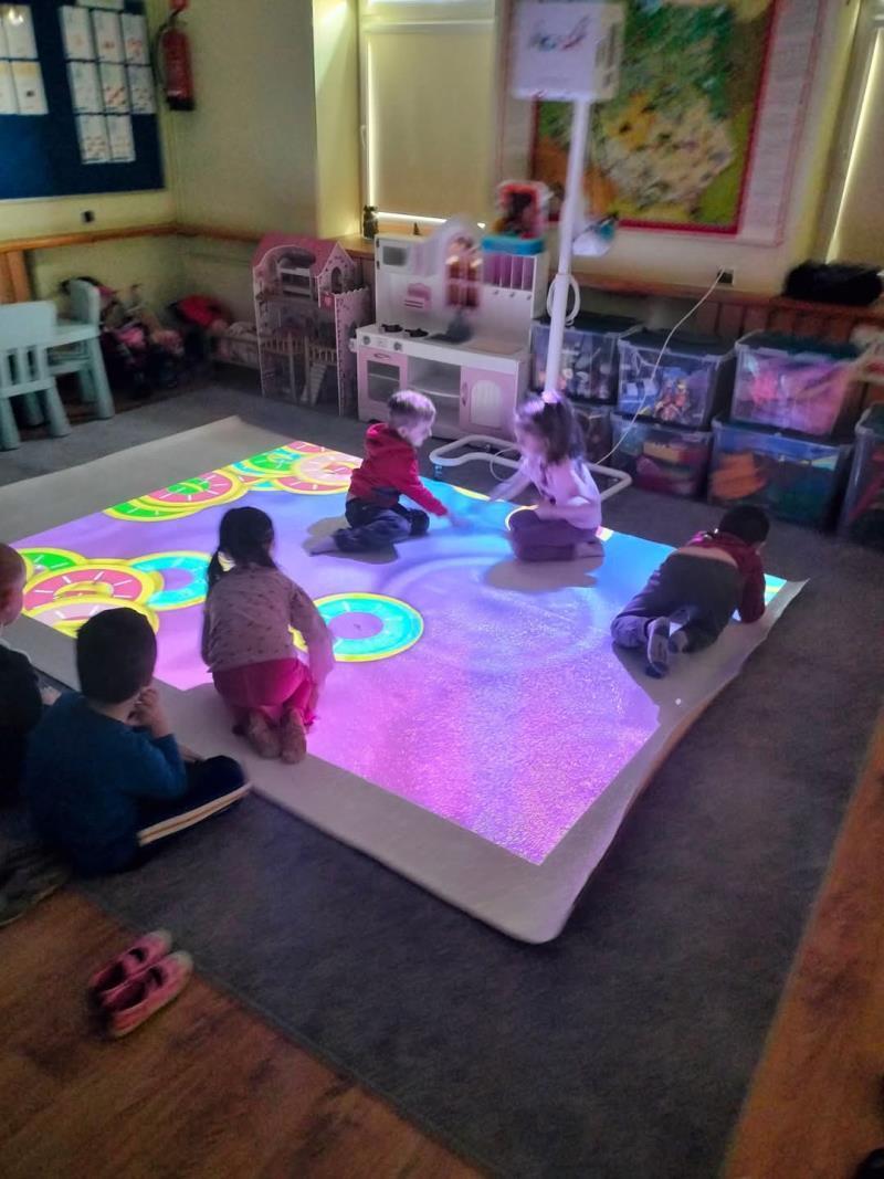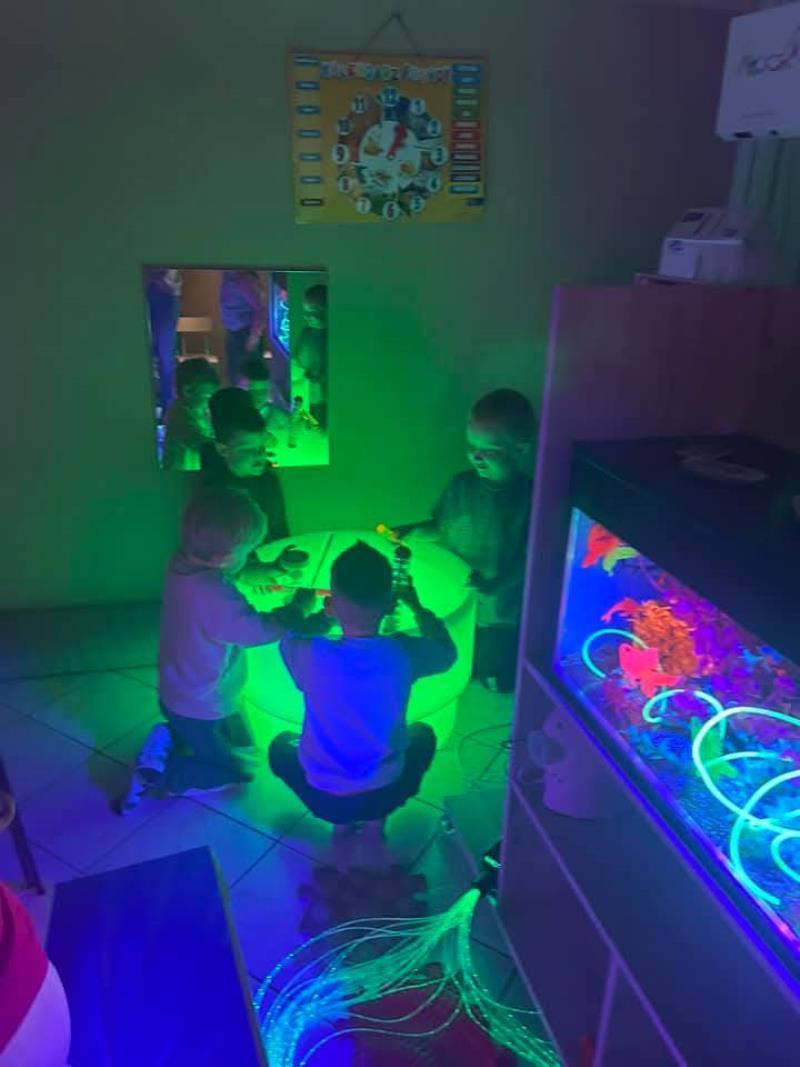 Dbamy o to, by nasza placówka była na miarę przyszłości. Sale wyposażone są w monitory multimedialne, dywan interaktywny oraz mobilną salę doświadczania świata, wspierającą rozwój sensoryczny i poznawczy. Bezpieczeństwo dzieci zapewnia monitoring obejmujący budynek oraz teren zewnętrzny.