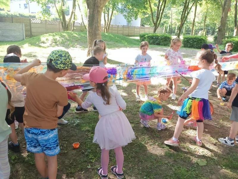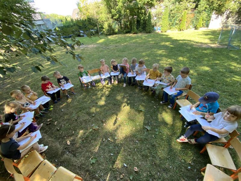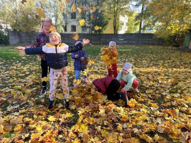 Do dyspozycji dzieci pozostaje bezpieczny i atrakcyjny plac zabaw, sprzyjający codziennej aktywności ruchowej oraz swobodnej zabawie na świeżym powietrzu. Dodatkowym atutem jest bliskość parku i terenów zielonych, które regularnie wykorzystujemy podczas spacerów i zajęć terenowych. Kontakt z naturą jest dla nas ważnym elementem codziennego dnia przedszkolnego. Ważnym elementem naszej pracy są również wycieczki autokarowe oraz wyjścia tematyczne, starannie zaplanowane